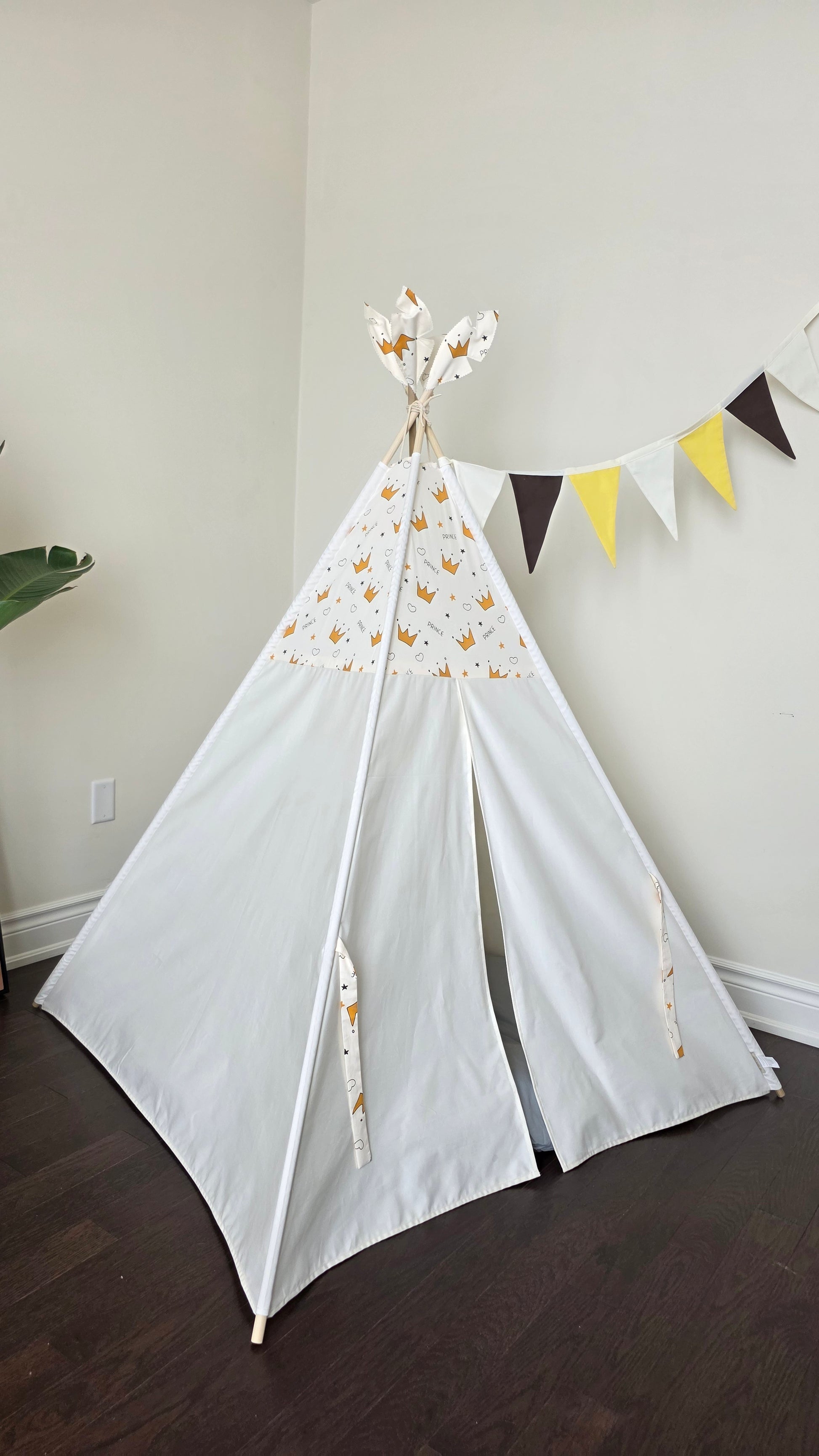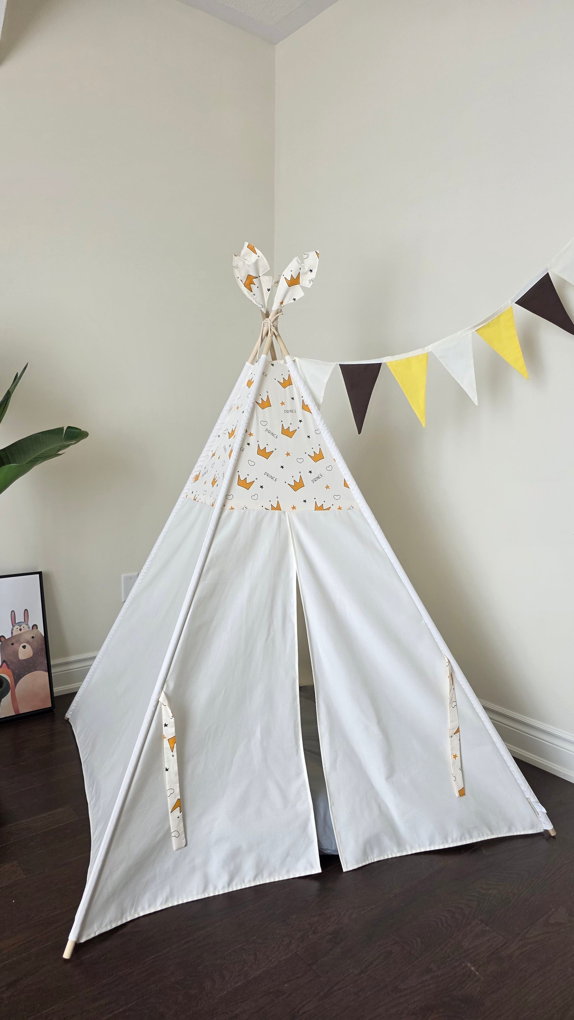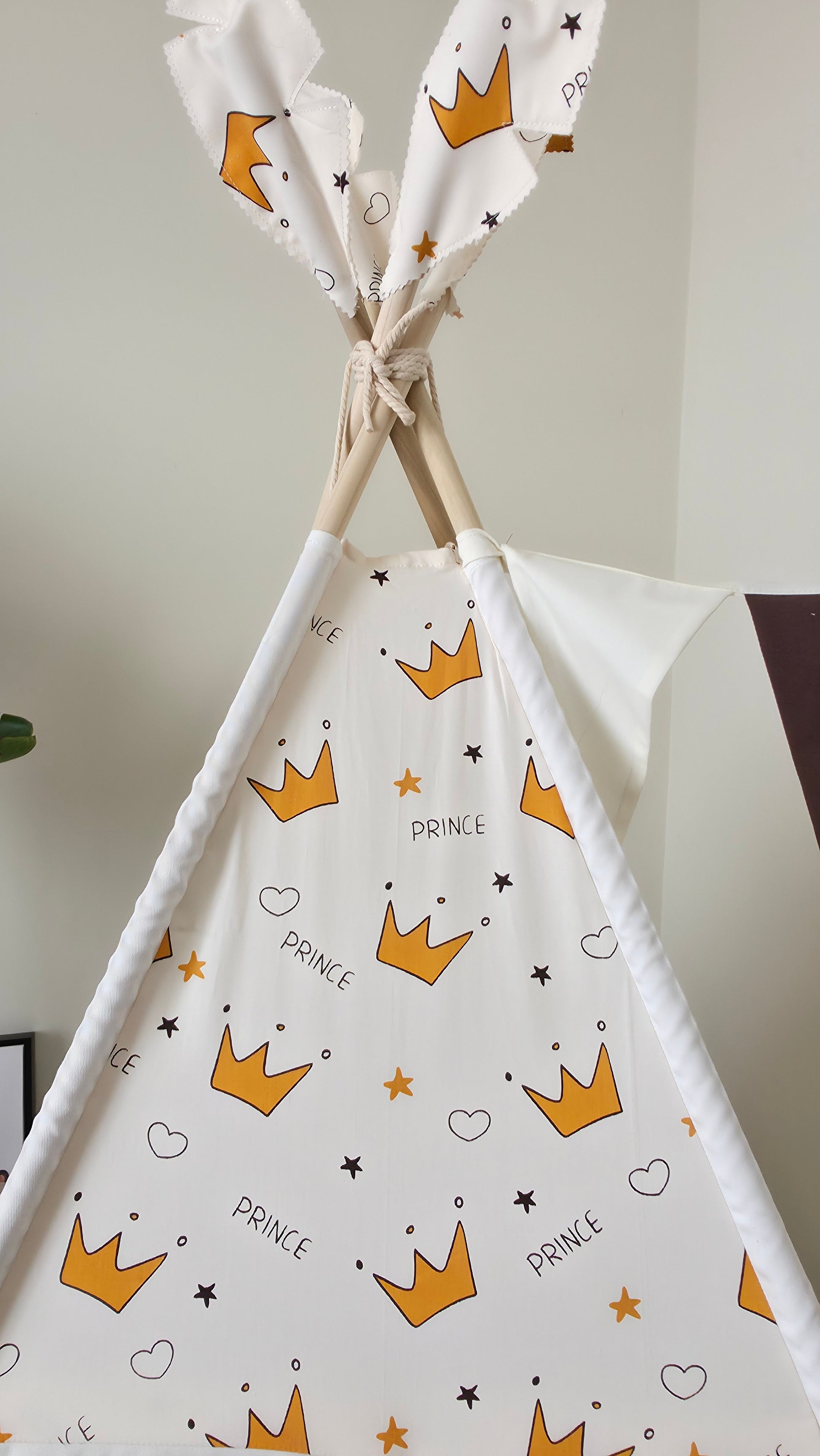 Let your child’s imagination reign with this charming Prince Crown Teepee. Featuring soft, elegant tones and a regal crown accent at the top, it’s the perfect play space for Storytime, quiet moments, or royal adventures.