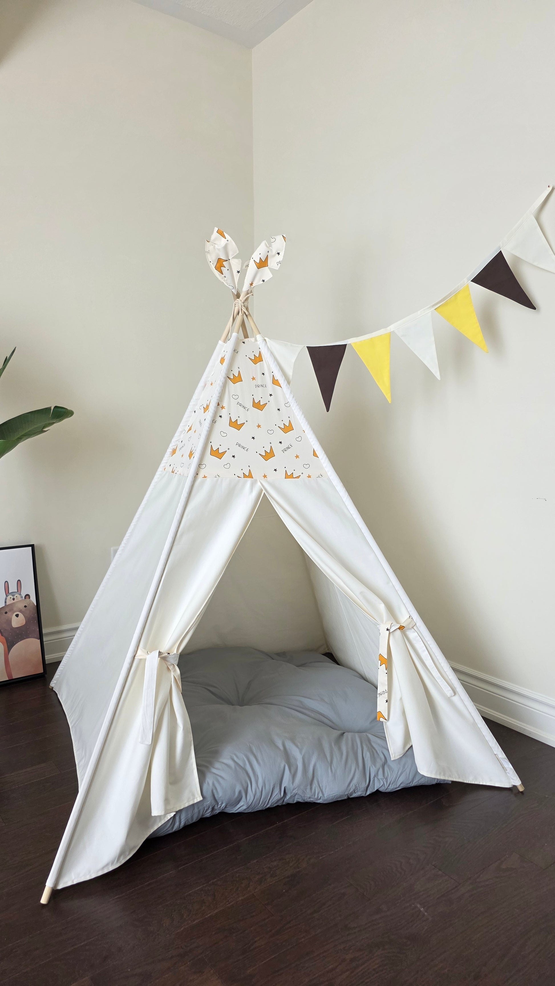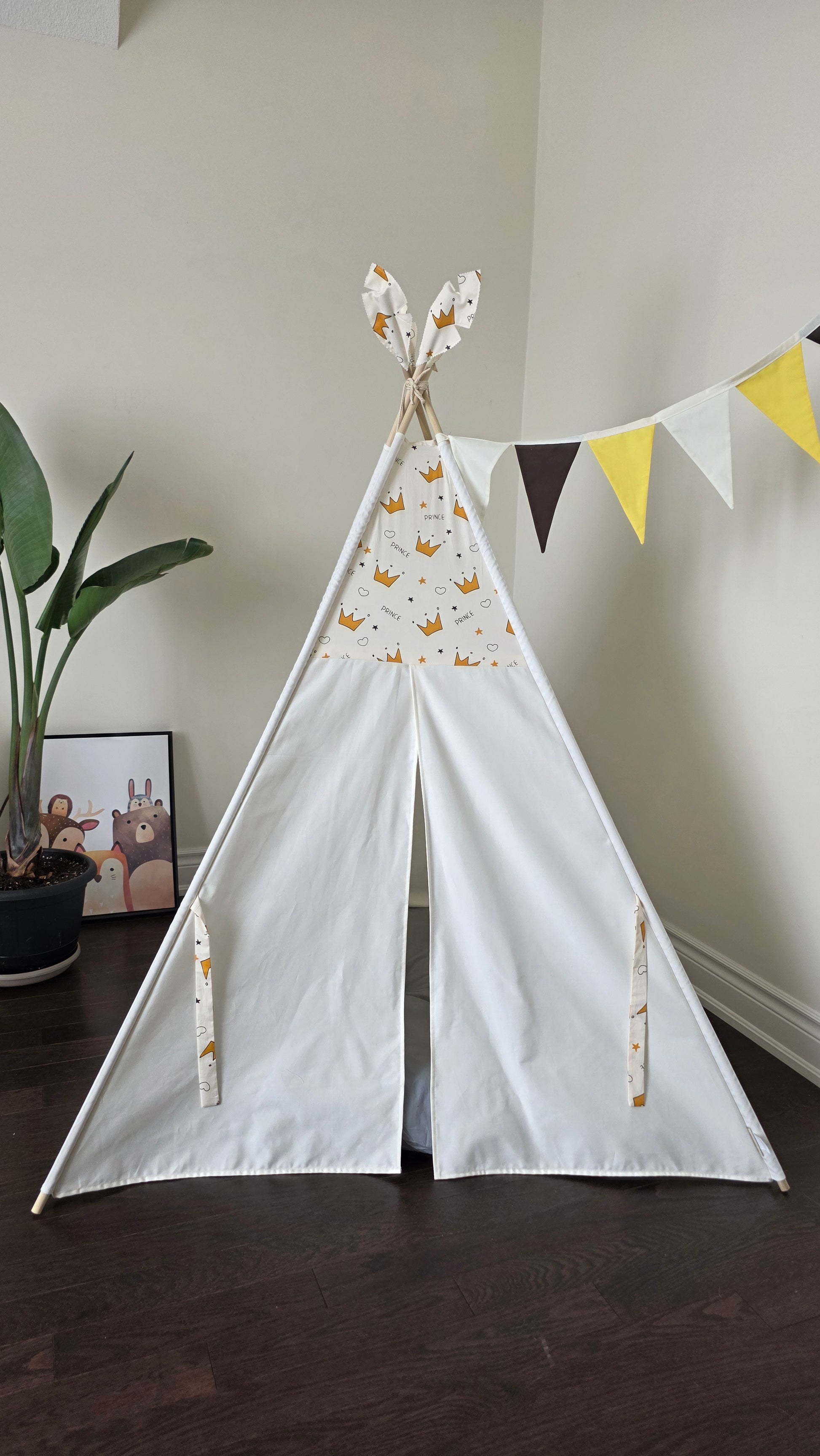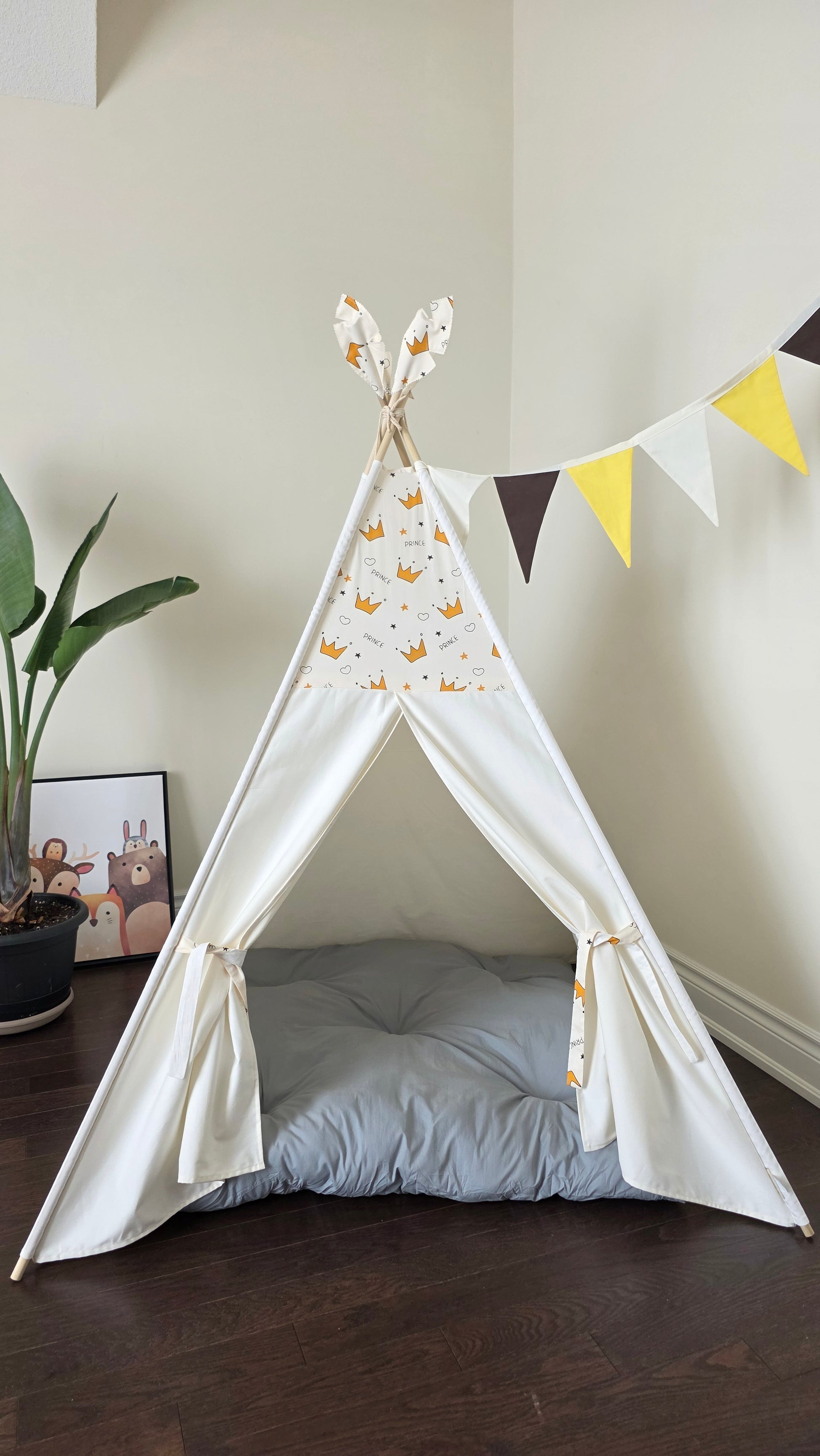 Let your child’s imagination reign with this charming Prince Crown Teepee. Featuring soft, elegant tones and a regal crown accent at the top, it’s the perfect play space for Storytime, quiet moments, or royal adventures.