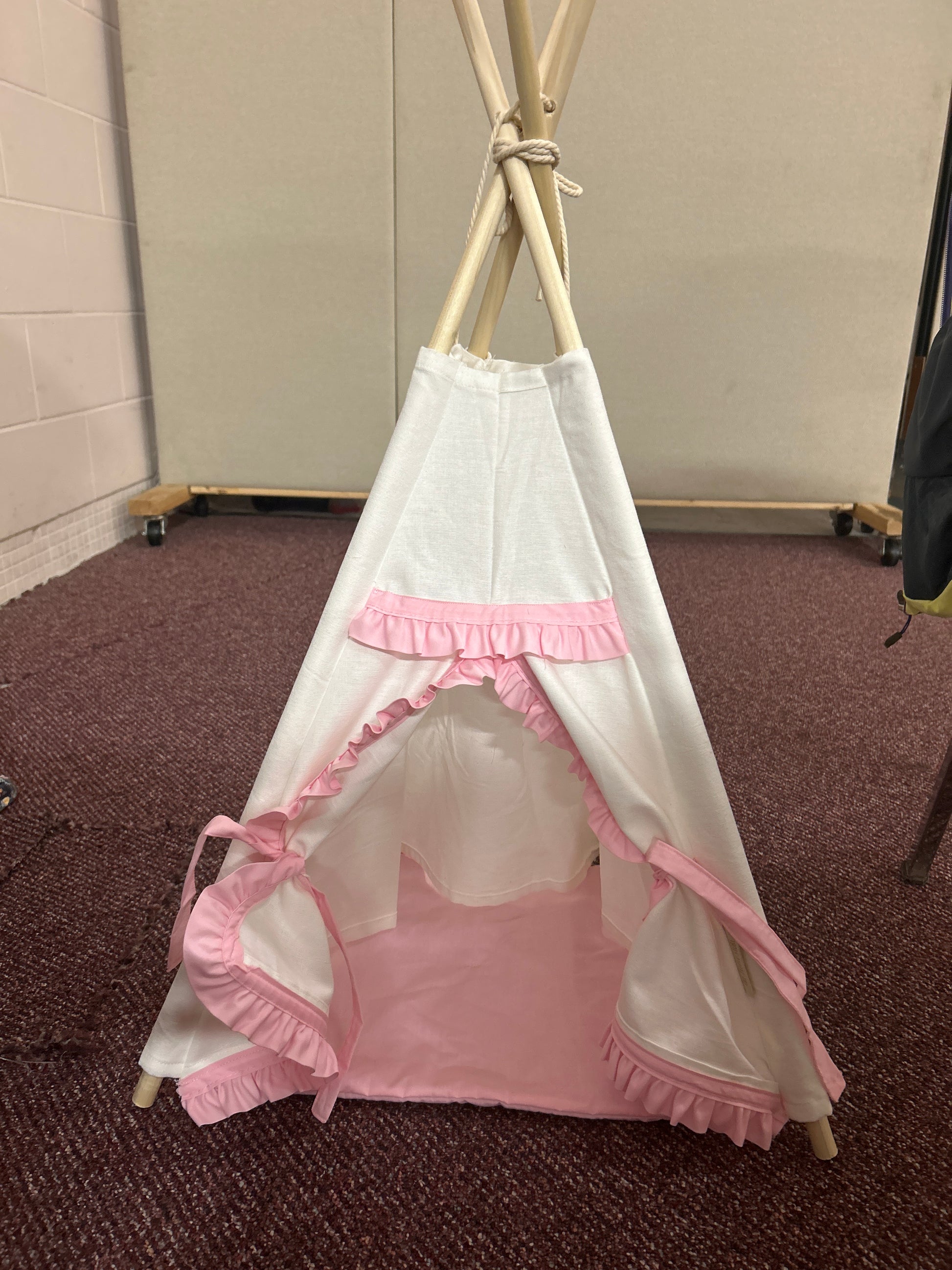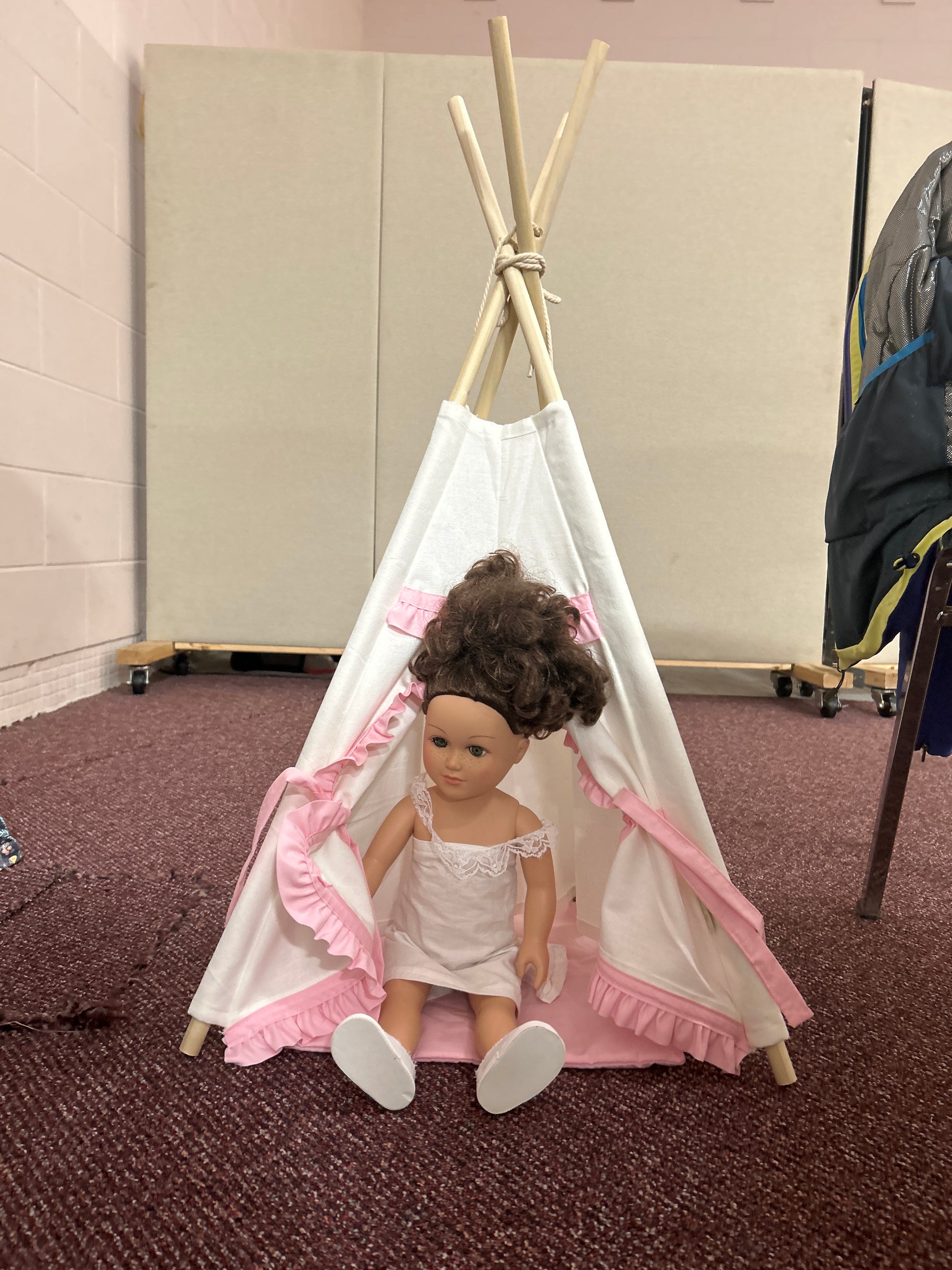 Big style, little size! This doll teepee is a miniature version of our classic ruffle tent — perfect for 18” dolls, plush friends, or little playmates.