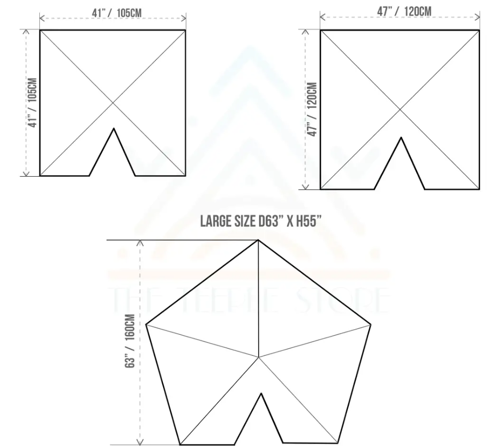 📐 Medium teepee (WxLxH) 120cmx120cmx130cm OR 47"x47"x51". This size could fit 1-2 children. 💢 AS ON PHOTO 💢