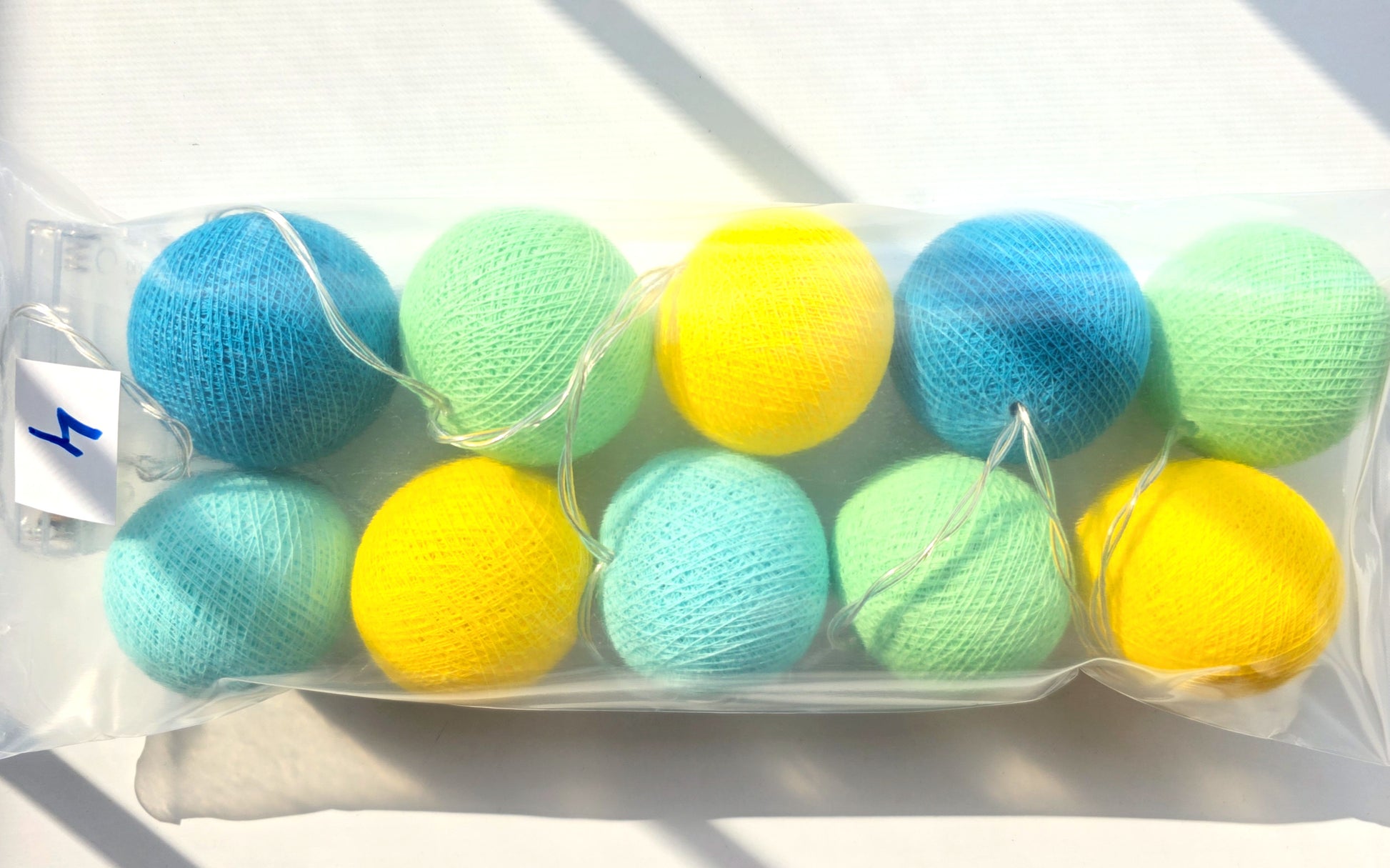 10 cotton balls in one string light.
